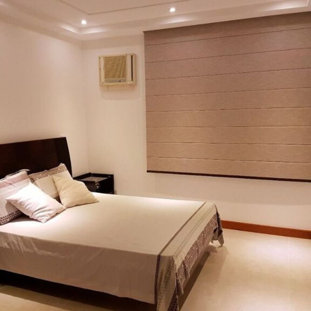 Persianas romanas combinam beleza e funcionalidade. Com seu design clássico, composto por painéis de tecido que se recolhem suavemente, oferecem controle de luz e privacidade.